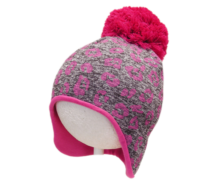 Dívčí zimní čepice ROCKINO z polaru se stříbrnošedým potiskem. Zdobená bambulí. Podšívka je z bavlněného úpletu a čepice je tak vhodná i pro děti s alergií.