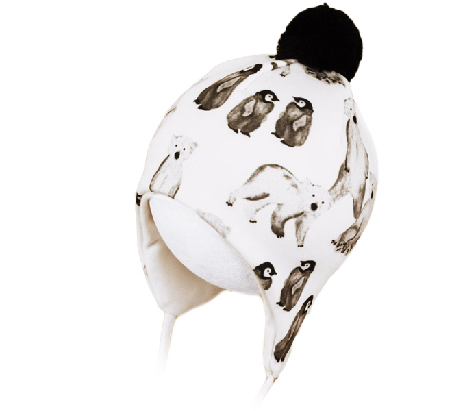 Detská čiapka Rockino zimná so šnúrkami vo všetkých veľkostiach. Vrchným materiálom je luxusný hladký polar, podšívka je z bavlneného úpletu. Podšívka má v zadnej časti švy posunuté do bokov a model tak nespôsobuje otlaky ležiacim deťom. Vzor je zdobený kvalitným potlačou a brmbolcom. Z hľadiska tepelných vlastností ide o menej teplý model, než sú typy podšité polarom alebo kožušinkou. Vhodný pri teplotách nad 0 stupňov.