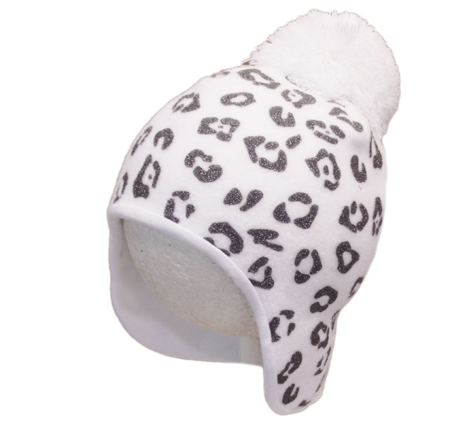 Dievčenská zimná čiapka ROCKINO z polaru so striebrosivou potlačou. Zdobená brmbolcom. Podšívka z bavlneného úpletu.