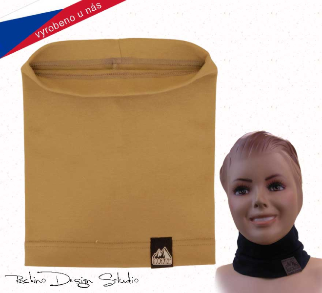 Tunel na krk pre prechodné obdobie jar-jeseň z pružného bavlneného úpletu. Univerzálna veľkosť, dá sa farebne kombinovať k čipkam jar-jeseň z rovnakého materiálu a v zhodných odtieňoch a potlačiach. Nosí sa veľmi dobre a je určený pre deti asi od 2-3 rokov až po dospelých. Vďaka jeho pružnosti ho môže nosiť i dospelý muž s najväčšou veľkosťou hlavy. Nášivka značky ROCKINO.
