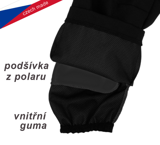 Materiál: vrchná vrstva softshell 100% polyester + TPU, vnútorná vrstva polar-fleece 100% polyester