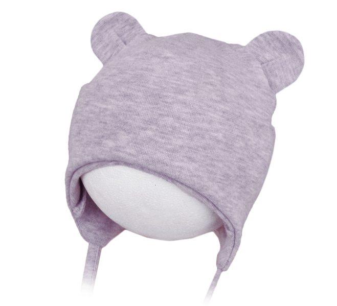 Dětská čepice Rockino se šňůrkami. Použitým materiálem je kvalitní bavlněný úplet. Model je jednovrstvý a patent přes čelo a uši je dvojitě ohrnutý. V těchto místech tedy zahřejí tři vrstvy bavlny. Zadní šev není jeden, ale jsou dva posunuté do boků (viz zadní pohled). Ležícím dětem tak čepička nezpůsobuje otlaky.